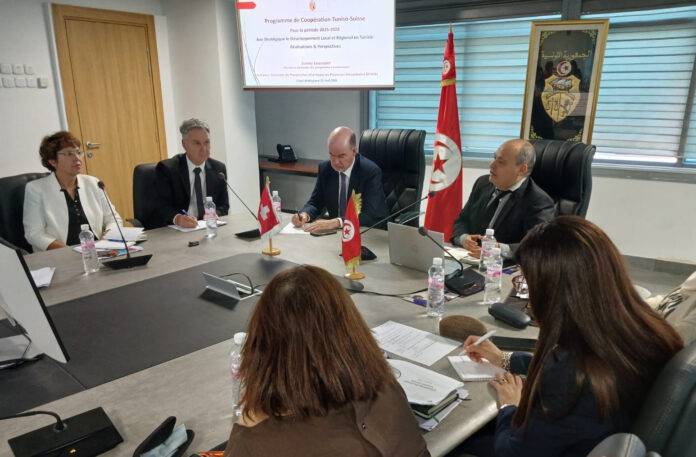 La 15ème réunion annuelle du Comité de pilotage du programme de coopération suisse en Tunisie s’est tenue ce mercredi 22 avril 2026. M. Samir Abdelhafidh, ministre de l’Économie et de la Planification, et M. Josef Renggli, Ambassadeur de Suisse pour la Tunisie et la Libye, ont assisté à l’ouverture de la réunion en présence des représentantes et représentants des différentes institutions partenaires concernées. Cette réunion a été l’occasion de dresser le bilan de l’année 2025 et d’examiner les perspectives de coopération pour l’année 2026.