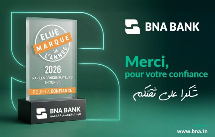 la BNA BANK été élue Marque de l’Année 2026 en Tunisie, consacrant ainsi la banque ayant su instaurer, dans le secteur bancaire, le plus haut niveau de confiance auprès des consommateurs tunisiens.