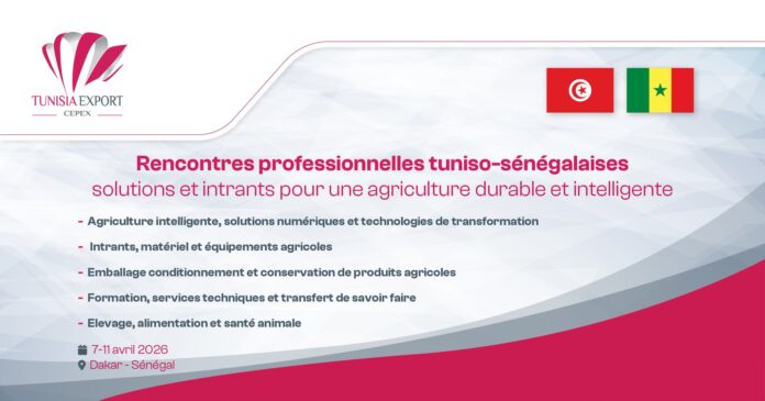 Organisée en partenariat avec l’ambassade de Tunisie au Sénégal, cette mission de prospection se déroulera du 7 au 11 avril 2026, avec l’objectif de capter les relais de croissance générés par la modernisation de l’agriculture sénégalaise et d’y positionner l’offre tunisienne comme un partenaire de référence.
