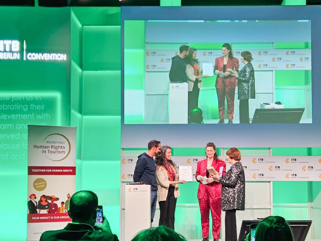 Sur la « Green Stage » de l’ITB Berlin, le co-fondateur et CEO Achraf Aouadi a partagé son émotion : « Il y a trois ans, j’étais intimidé et dépassé par l’ampleur de ce salon. Hier, j’étais sur scène. Ce prix est une validation de notre thèse : l’avenir du voyage n’est pas dans le volume, mais dans l’authenticité et l’impact. » Achraf a tenu à partager ce succès avec Dorra, Senior Project Manager (à ses côtés sur scène), et Sadok, Operations Manager, pour leurs deux années de travail acharné.