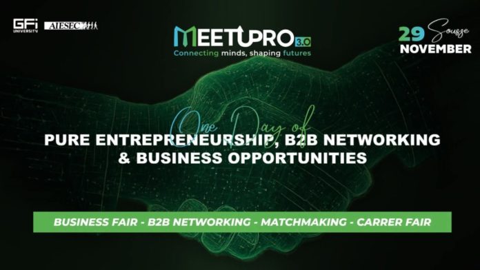 Organisé par AIESEC en Tunisie – Sousse, en collaboration avec le groupe GFI University, cet événement s’impose comme le plus grand forum d’affaires et salon de l’emploi du Sahel, réunissant entreprises, startups, investisseurs, professionnels et jeunes talents autour d’un même objectif : offrir une plateforme unique de rencontre et de développement, destinée à renforcer les synergies entre les différents acteurs économiques de la région.